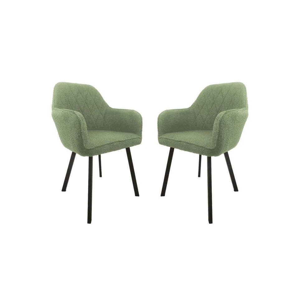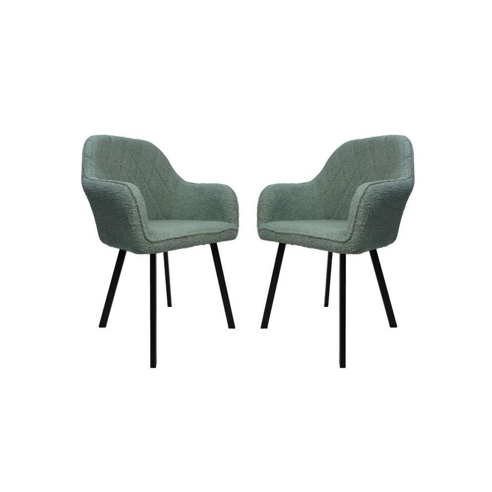 HSM Collection Eetkamerstoel Demi Lichtgroen/Zwart Teddy/Metaal Set Van 2