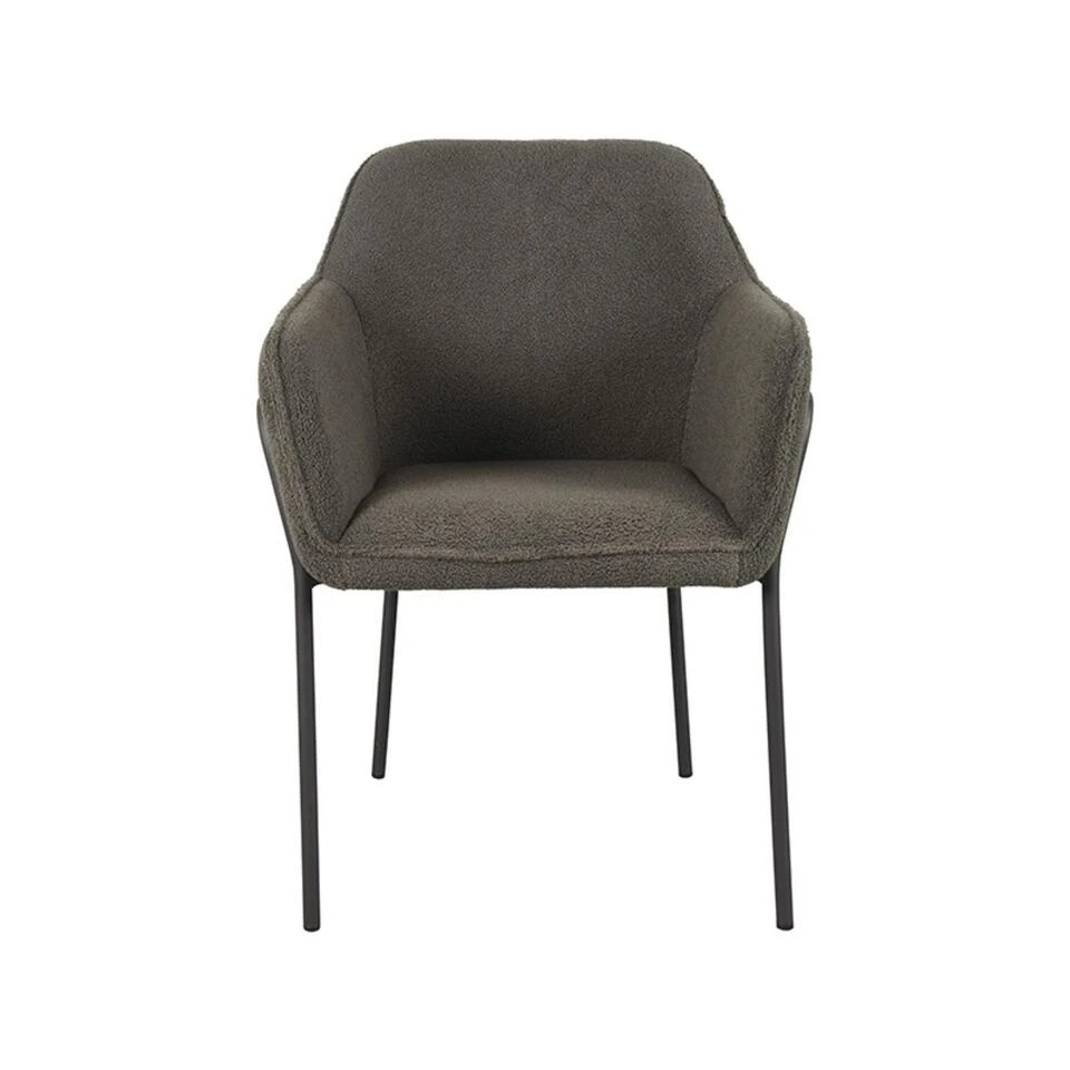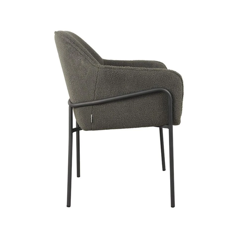 Eetkamerstoel Dexter van LABEL51 is een prachtige, zeer luxe armstoel uitgevoerd in een zachte groengrijze teddystof. De prachtige kuip rust in een solide maar subtiel zwart frame. Dexter is een eetkamerstoel waar je wel een hele avond in kunt toeven.