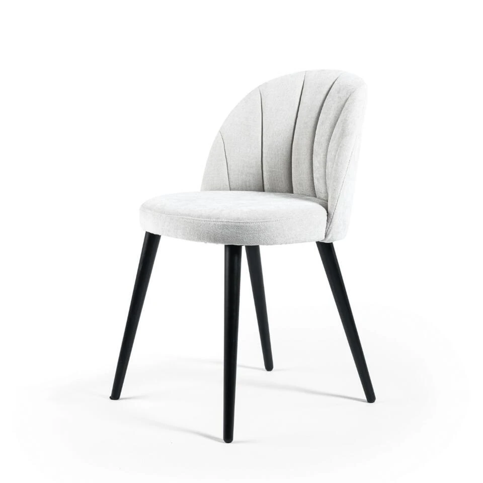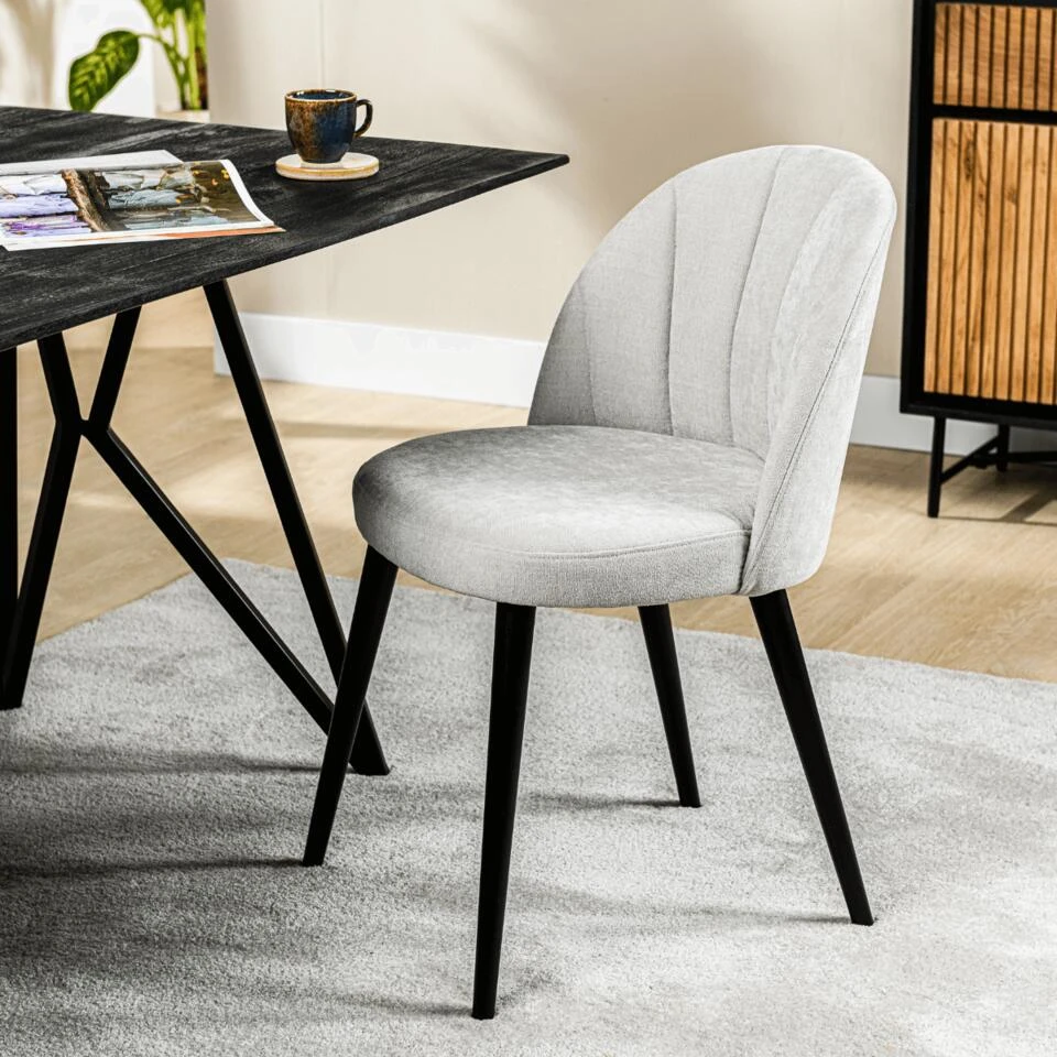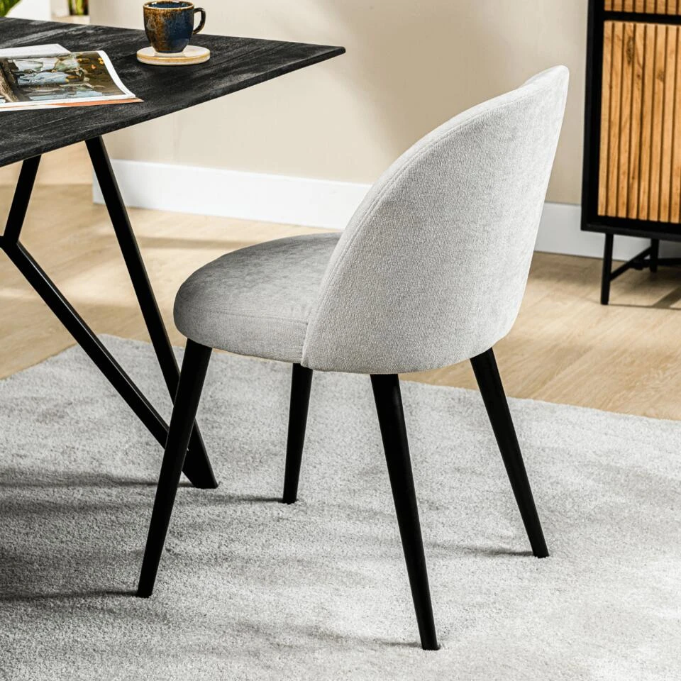 De Mako eetkamerstoel is een prachtige en comfortabele stoel van het woonmerk Vurna. De stoel is bekleed met hoogwaardige kwaliteit stof noa in een natuurlijke kleur die perfect matcht met de schuin staande zwarte poten. Deze combinatie van kleuren en materialen geeft de Mako een moderne en toch tijdloze uitstraling die in vrijwel elke eetkamer past. Wat de Mako eetkamerstoel echt onderscheidt, is het hoge zitcomfort. De stoel is gemaakt van fijne materialen en heeft een goede vulling, waardoor je er heerlijk lang op kunt zitten zonder last te krijgen van je rug of andere lichaamsdelen. De rugleuning zit rond om het zitvlak heen, dit maakt de stoel een lust voor het oog. De stoel heeft ook stiknaden lopen in de rugleuning, wat een speels effect creëert. De combinatie van de natuurlijke kleur en de zwarte poten zorgt voor een mooie en subtiele balans in het ontwerp. Al met al is de Mako eetkamerstoel een perfecte keuze voor iedereen die op zoek is naar een stijlvolle en comfortabele stoel voor in de eetkamer. Met zijn natuurlijke kleur, zwarte poten, fijne materialen en goede vulling is de Mako een geweldige aanvulling op elk interieur en een stoel waar je met plezier op zult zitten. Mako is verkrijgbaar in verschillende uitvoeringen, kijk hiervoor op onze website.