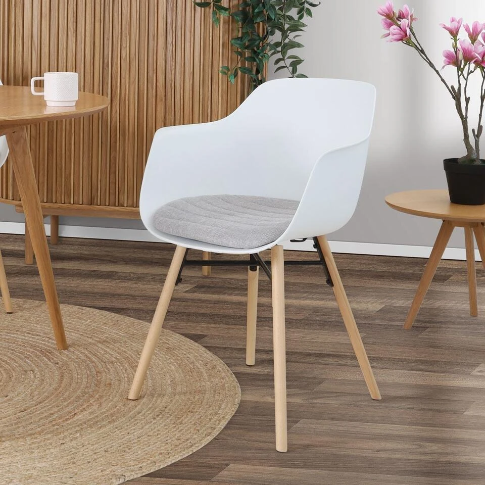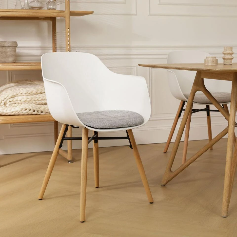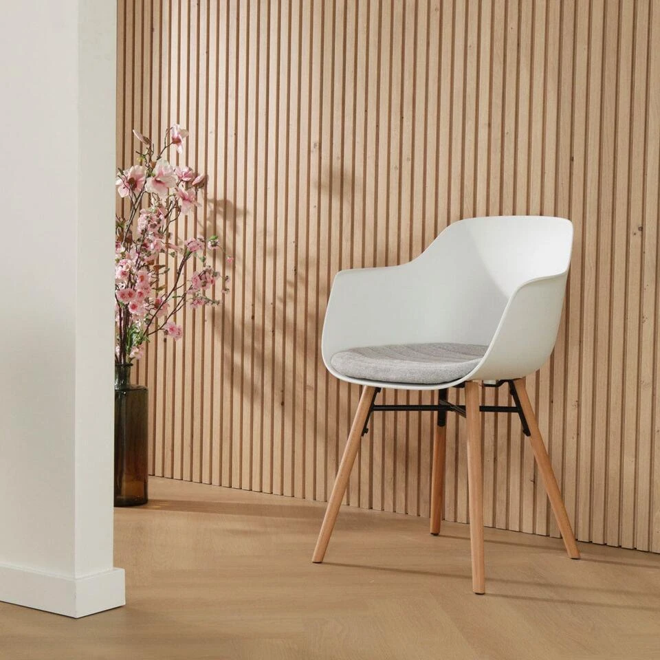 Een praktische en tegelijkertijd sfeervolle eetruimte creëer je met de Nena-Liz eetkamerstoel met kunststof zitting en armleuningen.