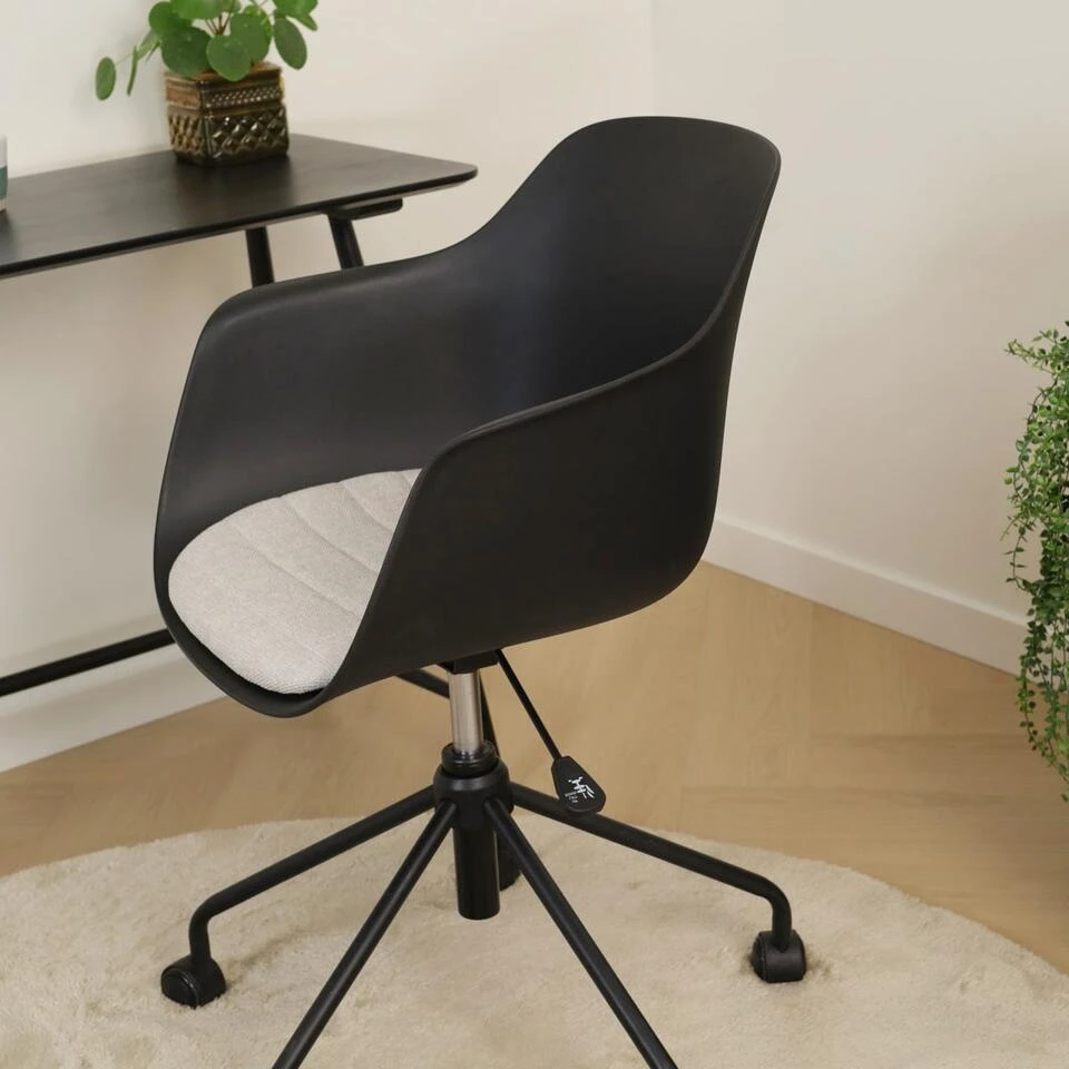 Nout is een moderne bureaustoel, waar je zeker wel op wilt (thuis) werken of studeren. De zitting van de bureaustoel is verkrijgbaar in het kunststof en je kunt kiezen uit verschillende kleuren vaste zitkussens in de stoel. Het onderstel is gemaakt van metaal en is in hoogte verstelbaar. Kortom, een moderne bureaustoel, waarin je ook lekker zit tijdens lange vergaderingen.