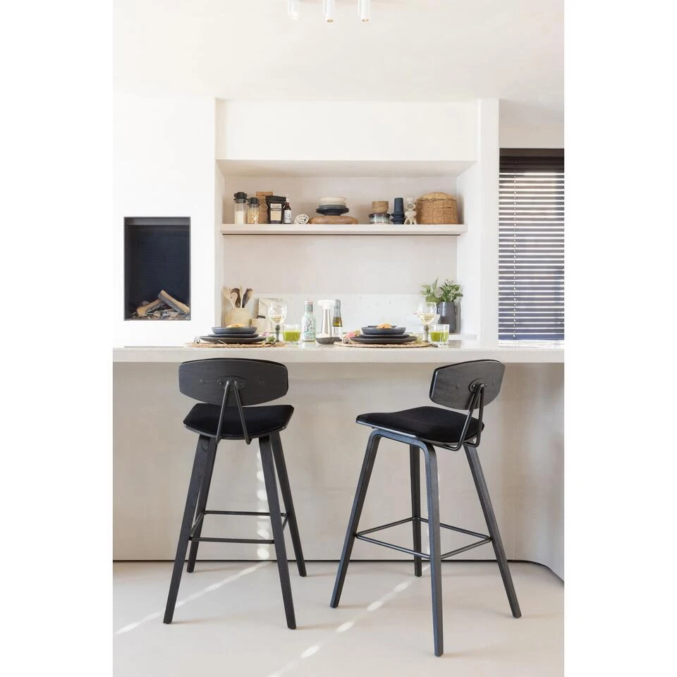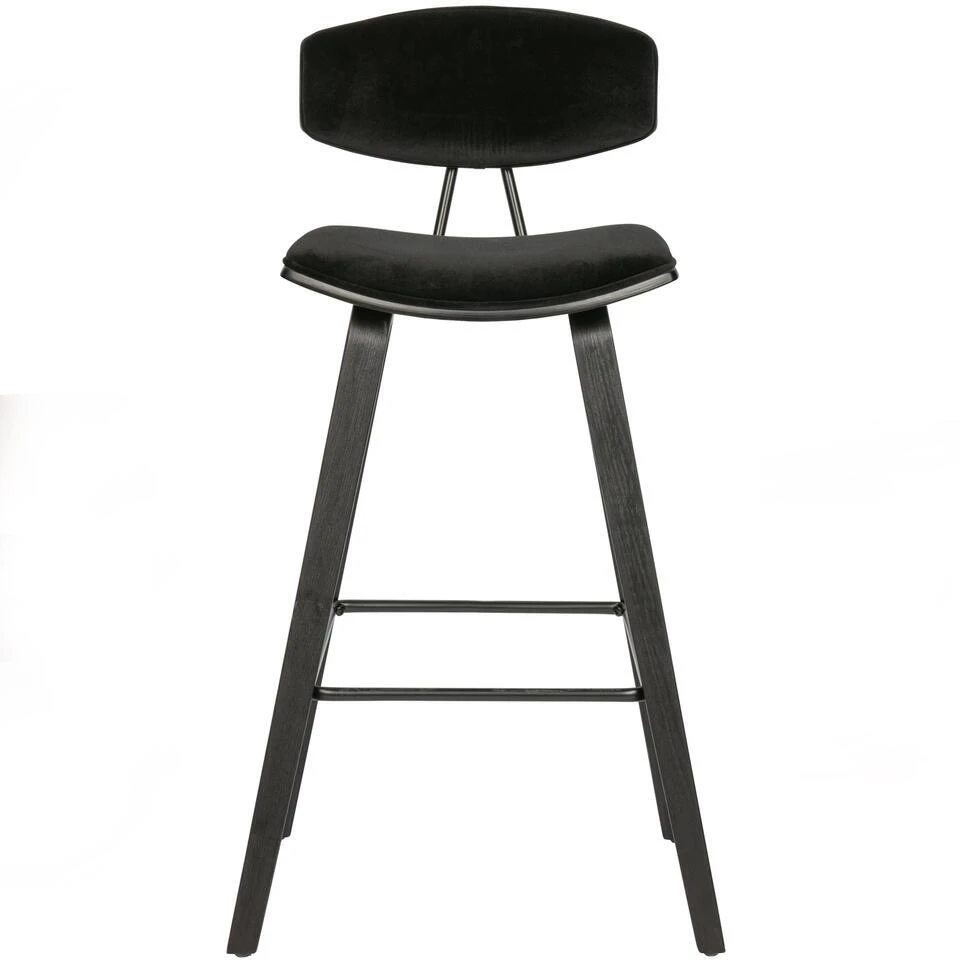 De Senn barstoel uit de collectie van het Nederlandse merk WOOOD Exclusive is een modern ontwerp met stoere uitstraling. De zitting en rugleuning van Senn zijn gemaakt van zwart multiplex bekleed met een zachte velvet stof in een zwarte tint. Het slanke frame is gemaakt van multiplex voorzien van een zwarte afwerking. Extra fijn: de metalen stang om de voeten comfortabel te laten rusten!